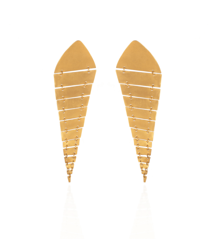 Todas las piezas son de brass con baño en oro de 24kt, acabado en oro mate, hechas a mano en Colombia.