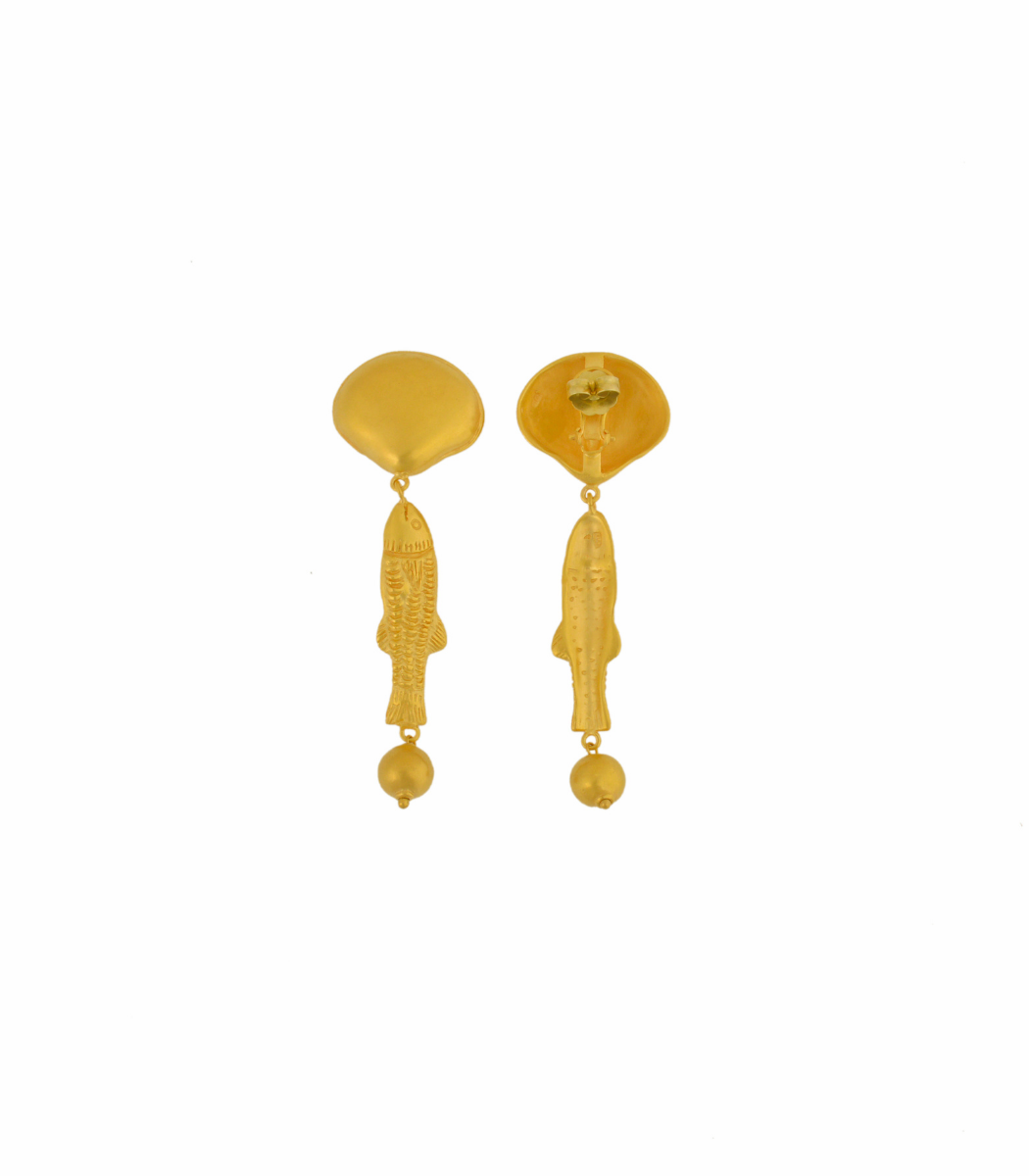 Estos aretes colgantes inspirados en la cultura Calima combinan la delicadeza de sus figuras de peces con un diseño contemporáneo, evocando una conexión única con la naturaleza y la tradición. Ideales para destacar en cualquier ocasión especial con un toque de historia y significado.
