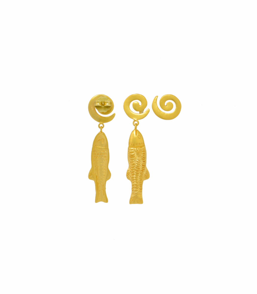 Estos aretes, inspirados en la cultura ZENU, presentan un diseño único con espirales y figuras de peces, simbolizando la conexión con la naturaleza y la armonía. El diseño exótico y detallado realza la belleza de la joyería tradicional ZENU con un toque moderno.
