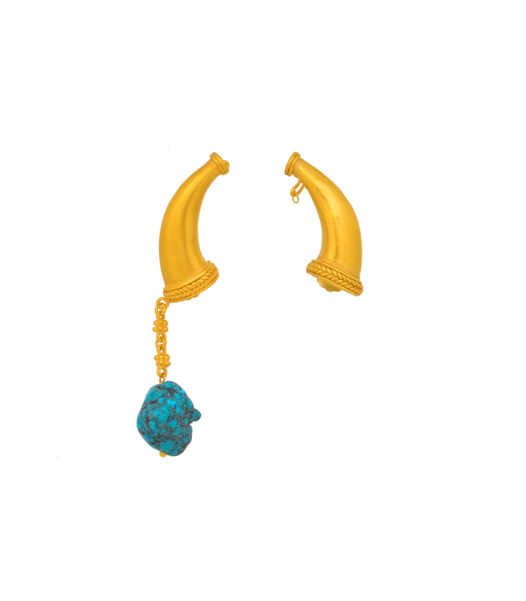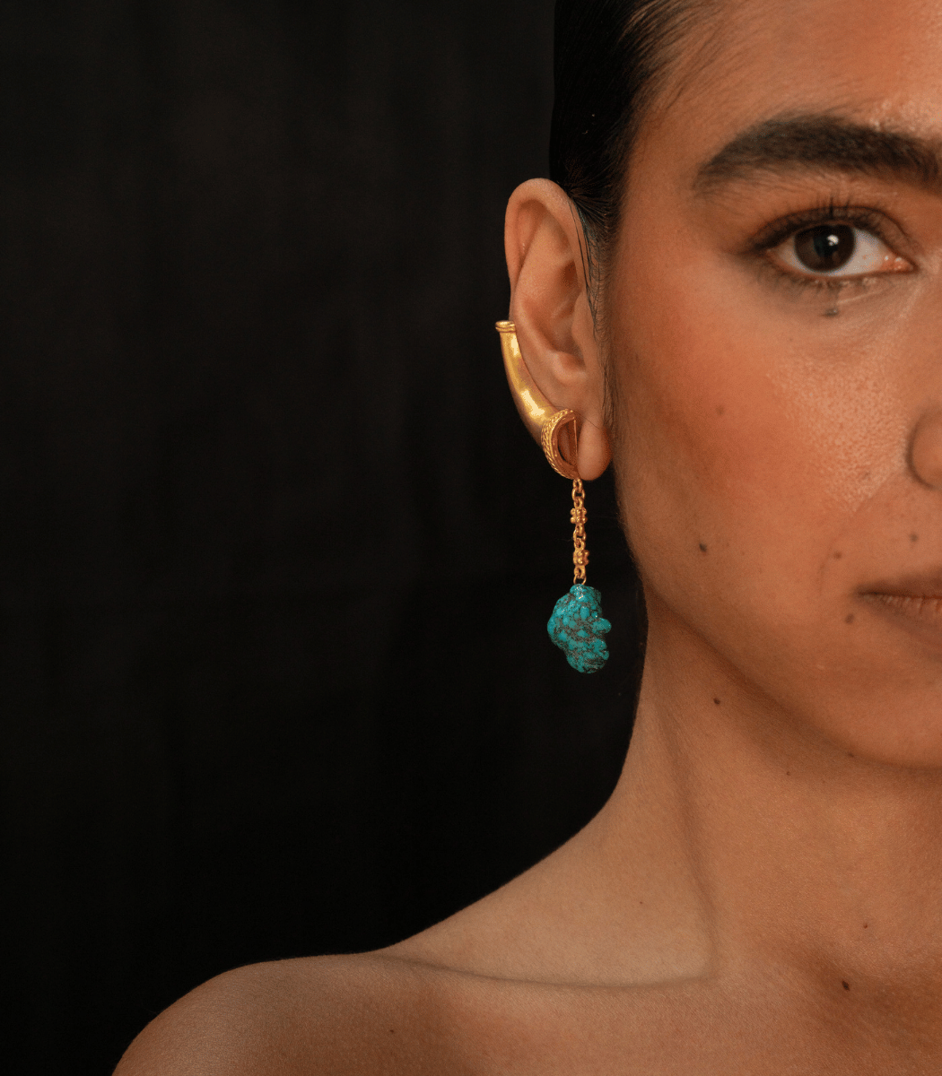 Un diseño que fusiona el símbolo del maíz sagrado con la fuerza de los minerales. Los Qori Earrings rinden homenaje a la fertilidad y la abundancia, valores esenciales para la cosmovisión TAYRONA.