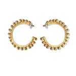Estos aretes tipo hoop presentan un diseño elegante y sofisticado que captura la esencia de la cultura CALIMA, destacando la riqueza de sus formas y detalles. El acabado en oro mate realza la estética de la pieza, dándole un aire atemporal.