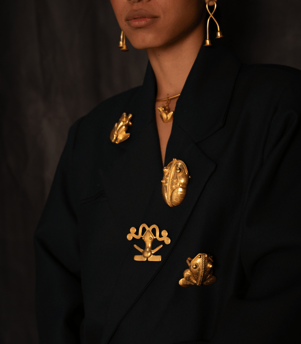 Inspirado en el legado de los ZENÚ, este broche representa una figura antropomorfa que rinde homenaje al vínculo espiritual entre la tierra y sus guardianes. Una pieza escultórica que sobresale en cualquier prenda.