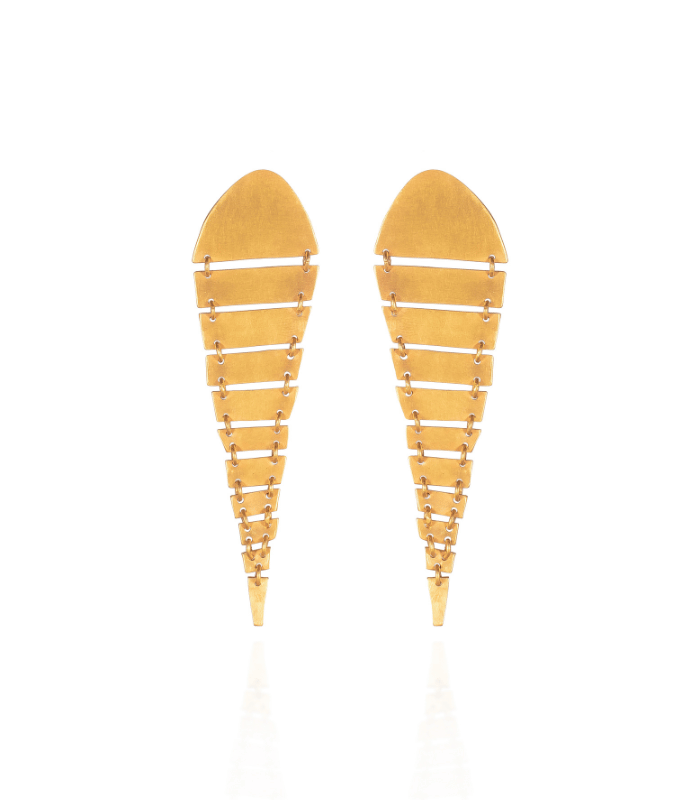 Todas las piezas son de brass con baño en oro de 24kt, acabado en oro mate, hechas a mano en Colombia.