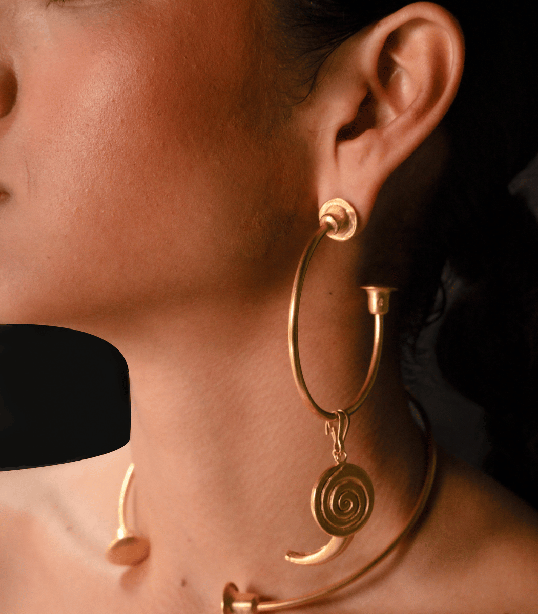 Todas las piezas son de brass con baño en oro de 24kt, acabado en oro mate, hechas a mano en Colombia.