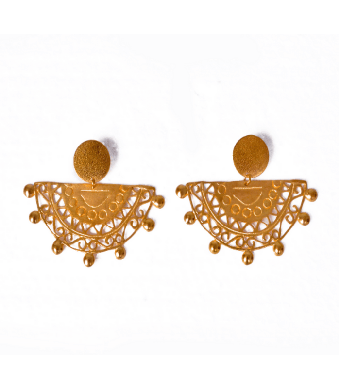 Estos aretes están inspirados en las elaboradas formas geométricas y detalles ornamentales que caracterizan a la cultura Zenu. Su diseño con delicados colgantes simboliza la riqueza cultural de los pueblos indígenas y su conexión con la tierra.