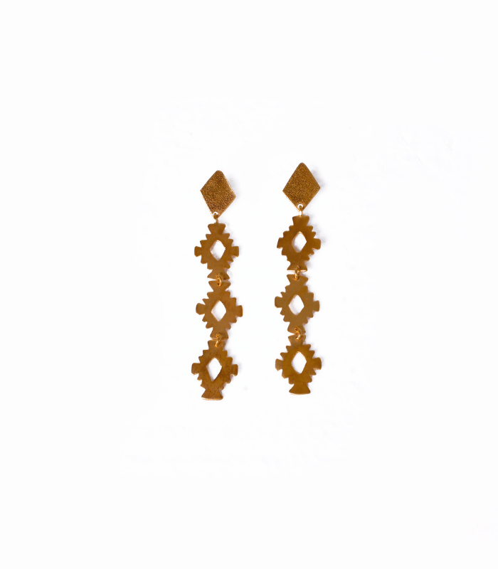 Todas las piezas son de brass con baño en oro de 24kt, acabado en oro mate, hechas a mano en Colombia.
