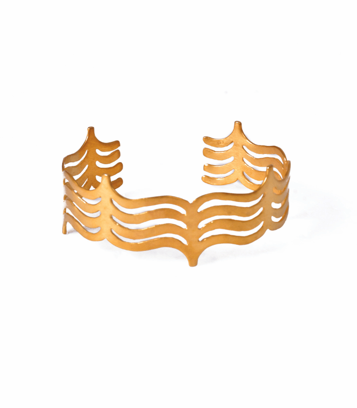 Todas las piezas son de brass con baño en oro de 24kt, acabado en oro mate, hechas a mano en Colombia.