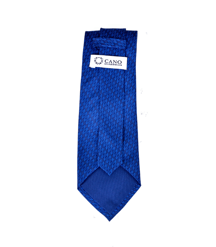Esta corbata presenta un patrón sutil de intrincados diseños azules sobre un rico fondo azul marino, creando una armoniosa combinación de color y textura. Con un ancho de 9.0 cm y confeccionada en seda de primera calidad, esta corbata ofrece una sensación lujosa y un acabado elegante.