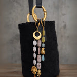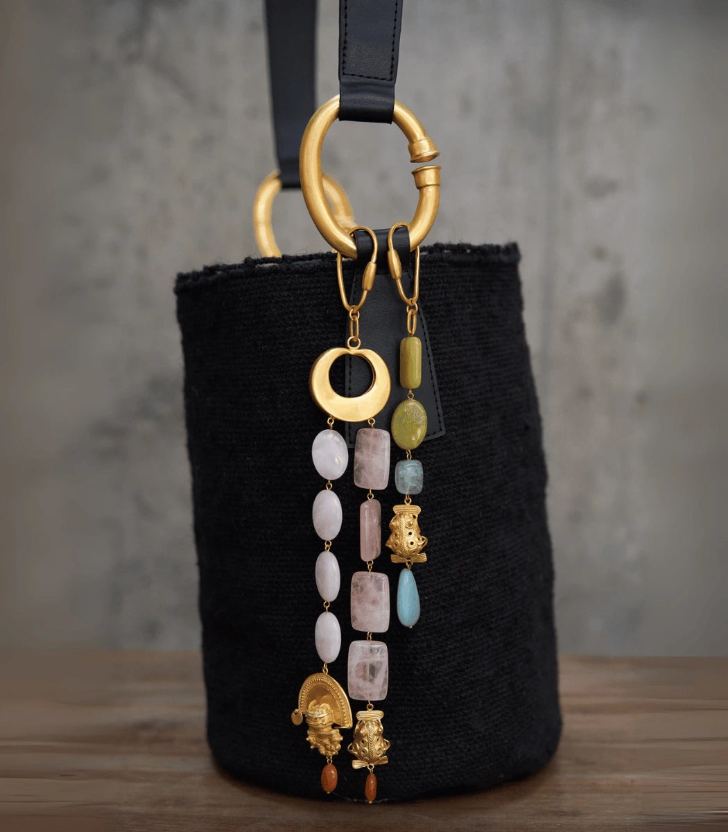 El llavero Maya fusiona formas orgánicas y símbolos ancestrales inspirados en la cultura TAYRONA. Las piedras semipreciosas de tonos cálidos evocan conexión emocional y armonía, mientras los dijes representan legado e identidad.