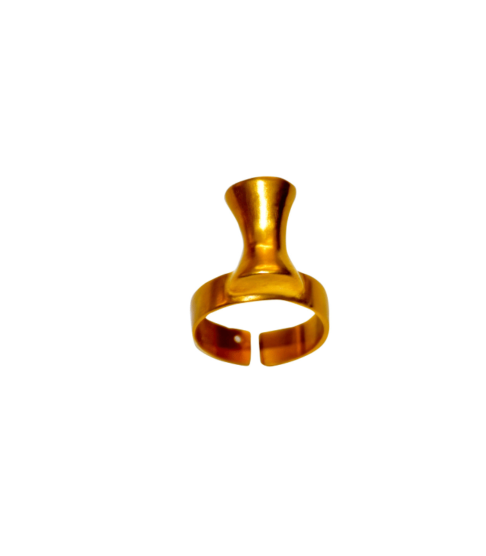 Este anillo minimalista con baño de oro de 24kt se caracteriza por su diseño curvo y ajustable, perfecto para complementar cualquier estilo.