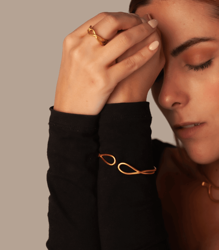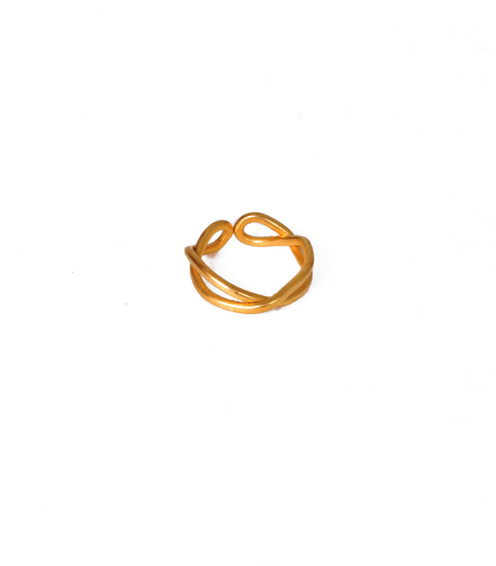 Este anillo presenta un diseño minimalista con líneas entrelazadas, dando lugar a una pieza única y elegante. Su estructura sencilla y moderna lo convierte en el accesorio perfecto para un look sofisticado y discreto.