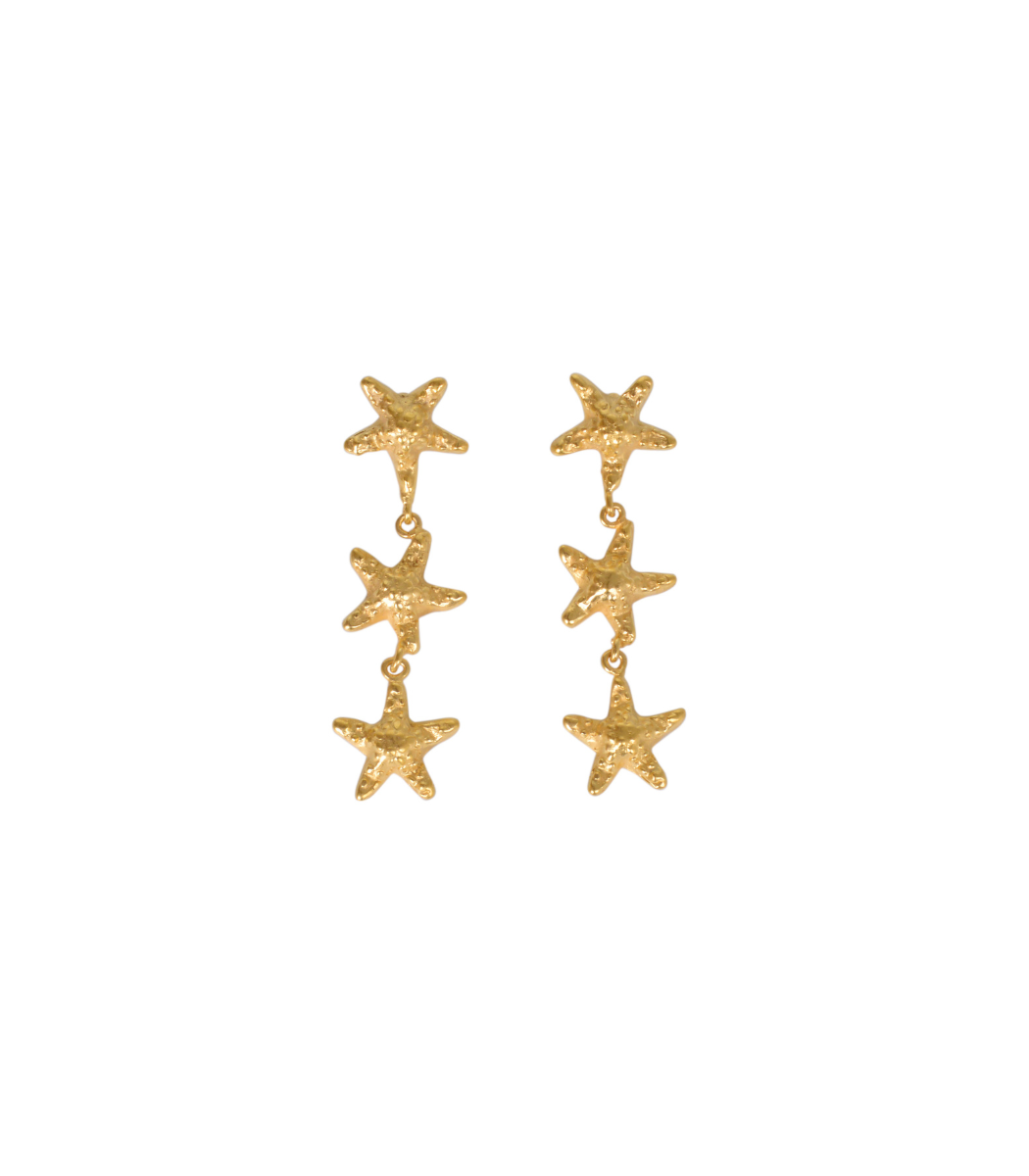 Estos aretes, inspirados en las estrellas de mar, evocan la profunda conexión de la cultura Tairona con la naturaleza marina. El diseño fluido y orgánico destaca por sus formas delicadas, representando la belleza natural del mar y su riqueza simbólica. Una pieza que captura la esencia del mar y la historia indígena de Colombia.