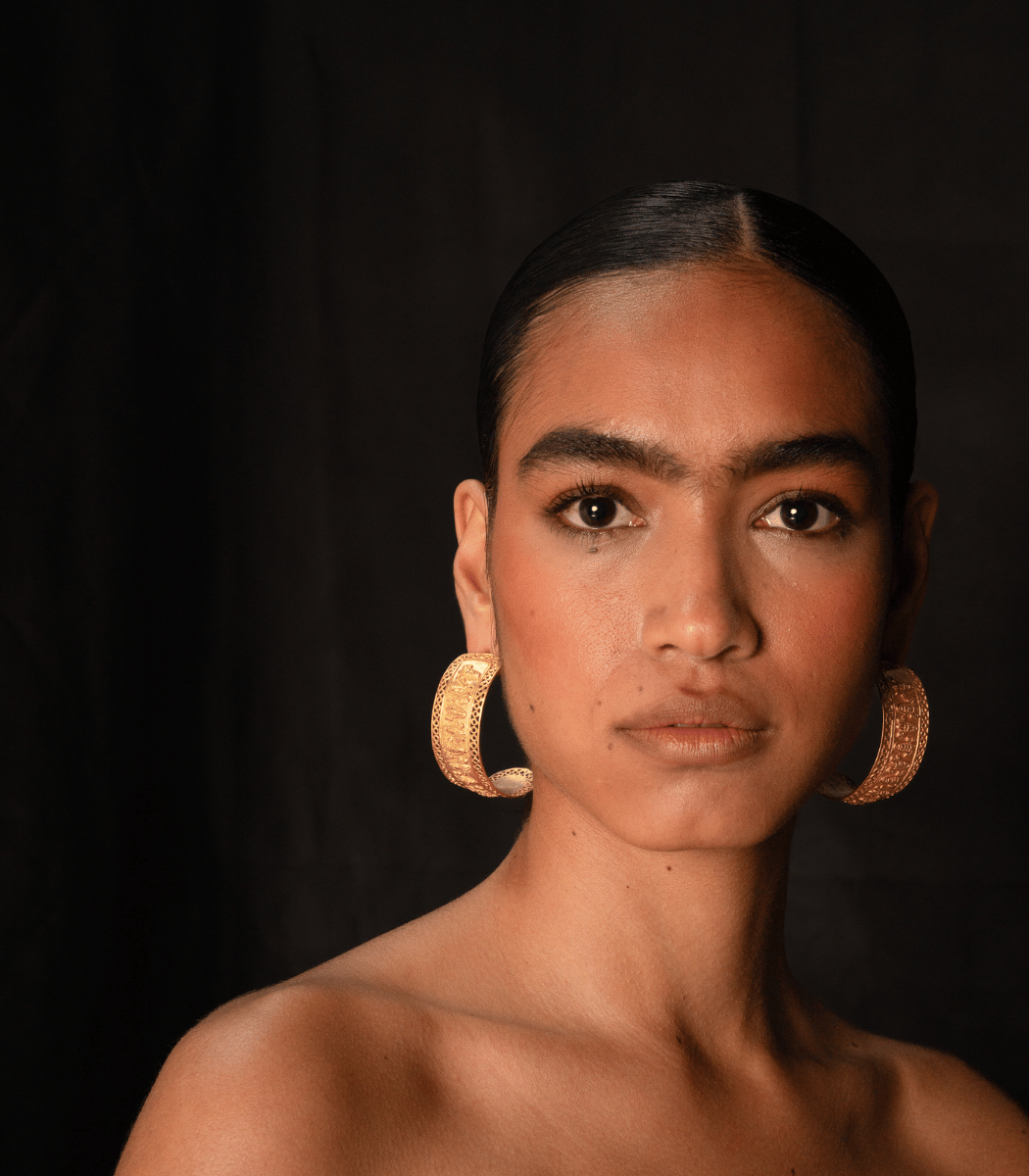 Aros estructurados con texturas que reflejan patrones ancestrales. Su forma envolvente y detalle grabado los convierten en una pieza versátil y llamativa.