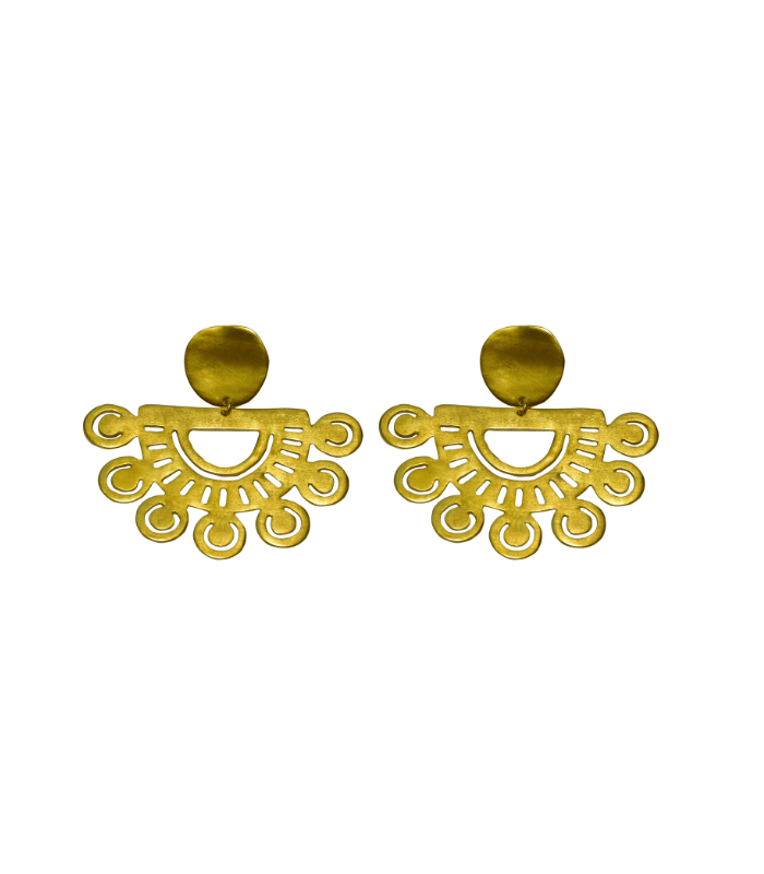 All pieces are crafted in brass with a 24kt gold plating, finished in matte gold, and handmade in Colombia.