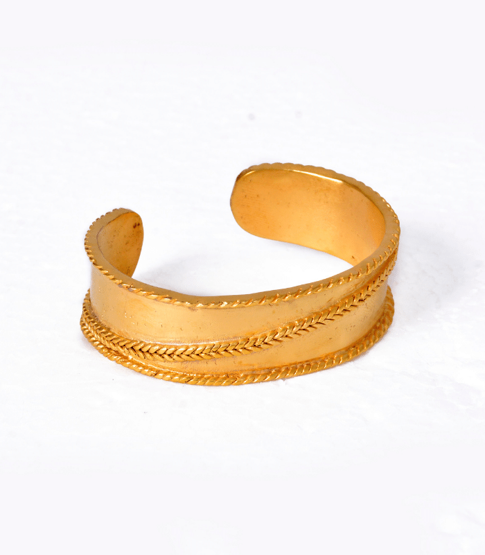 This bracelet features a sturdy and elegant design with braided details that add a unique texture to the piece. Its solid and detailed structure symbolizes the cultural richness of the region.