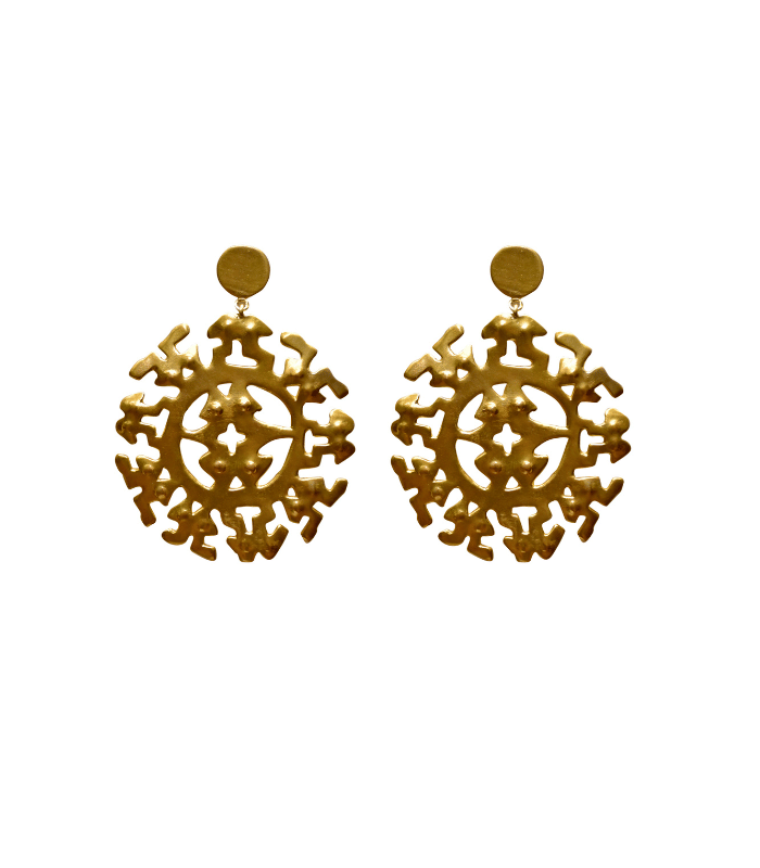 All pieces are crafted in brass with a 24kt gold plating, finished in matte gold, and handmade in Colombia.