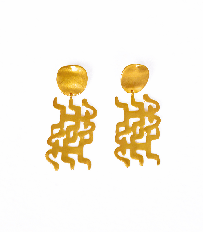These earrings are inspired by the geometric designs and symbols of the TOLIMA culture, famous for its abstract patterns and connection with nature and everyday life. The pieces reflect contemporary elegance with ancestral influences, perfect for a woman looking for pieces with great presence.