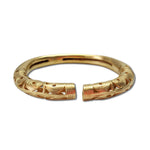 This elegant bracelet features an intricate design with carved details that highlight its refined aesthetic. Its polished matte gold finish reflects a blend of traditional and modern art, making it perfect for those looking for a unique and timeless piece.