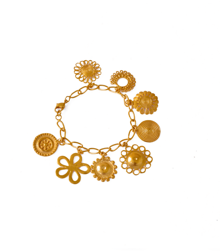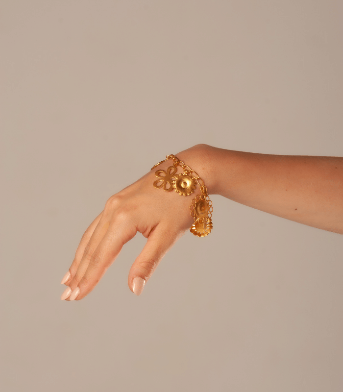 All pieces are crafted in brass with a 24kt gold plating, finished in matte gold, and handmade in Colombia.