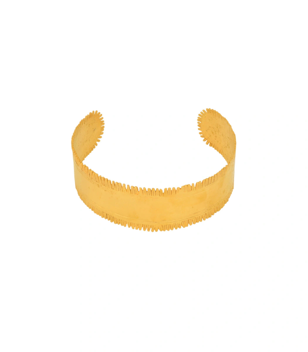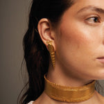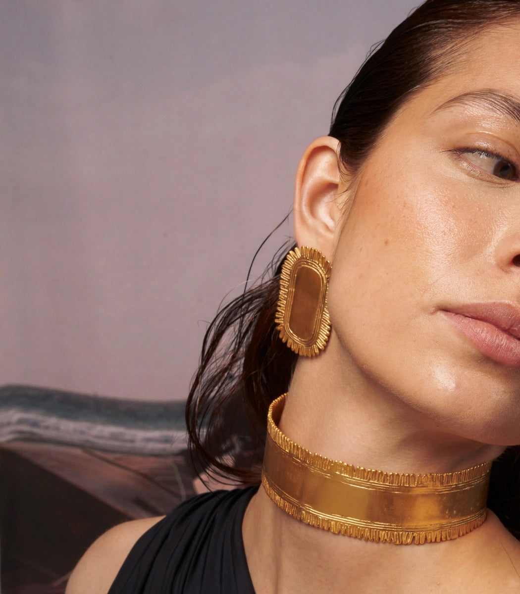 The Talua Choker draws inspiration from the MUISCA culture, reflecting its symbolic richness through handcrafted forms and details that connect tradition and modernity.