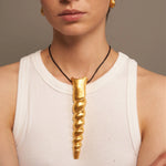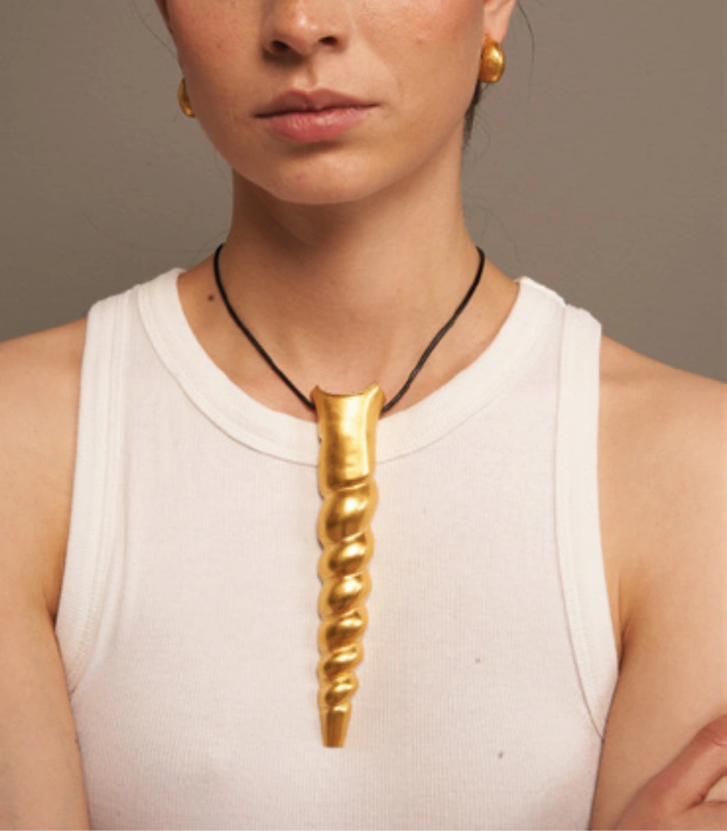 The Tumi Leather Necklace draws inspiration from the TAYRONA culture, reflecting its symbolic richness through handcrafted forms and details that connect tradition and modernity.
