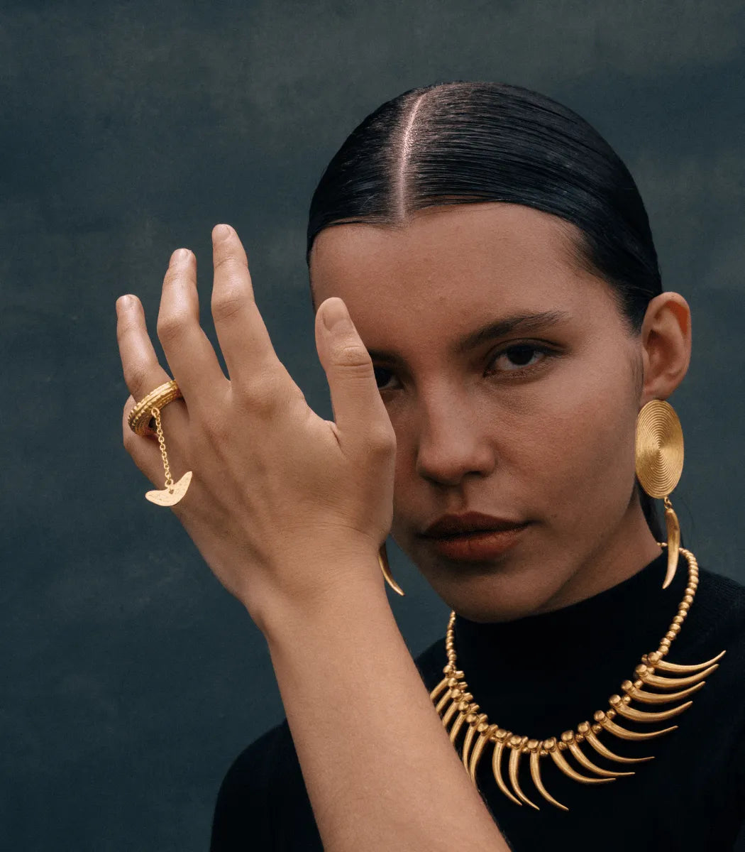 Rooted in the strength of pre-Columbian heritage, Taver is a collection that transforms ancient treasures into bold, wearable statements. Designed to stand out over turtlenecks and winter coats, these pieces embody power, presence, and timeless allure.