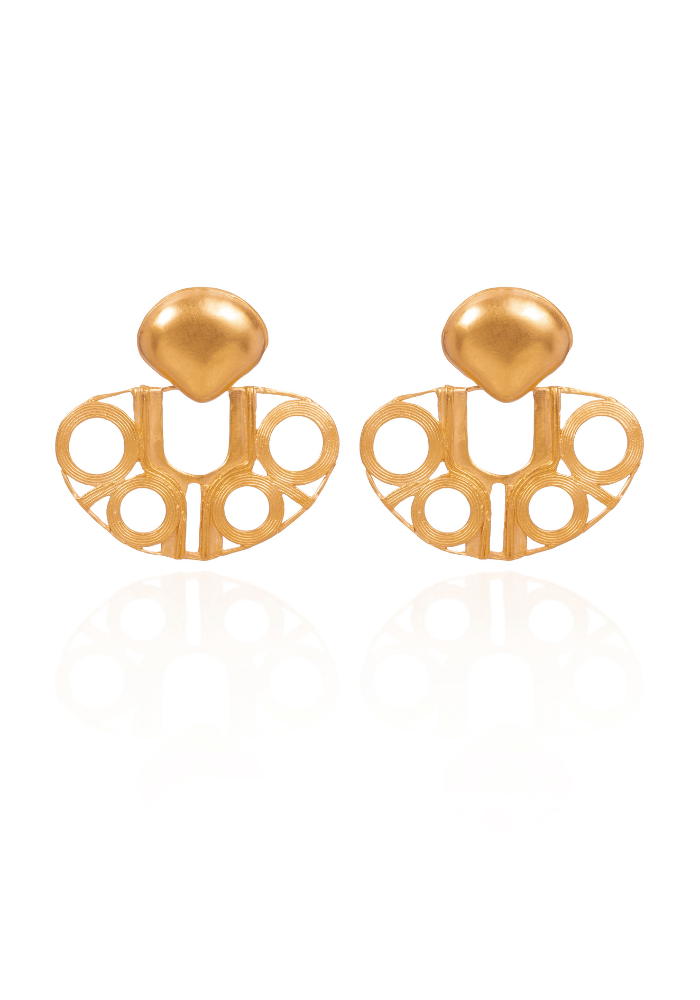All pieces are crafted in brass with a 24kt gold plating, finished in matte gold, and handmade in Colombia.