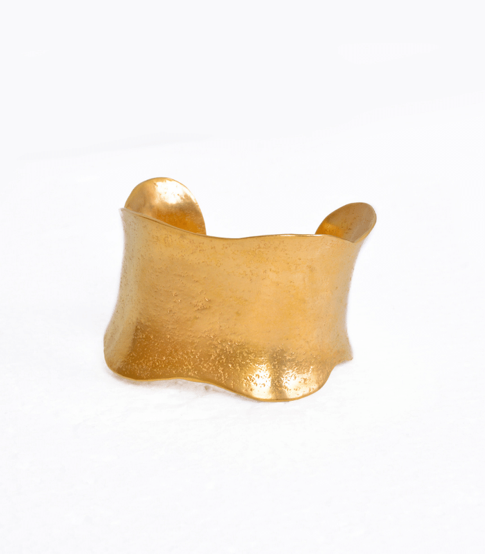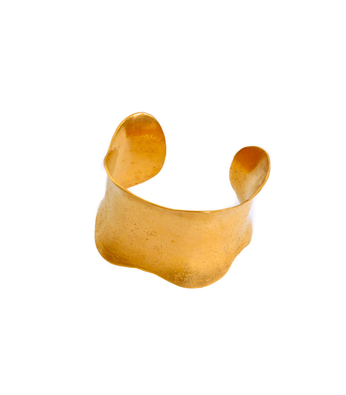 This bracelet is inspired by the intricate goldsmithing of the QUIMBAYA culture, known for its mastery in the manipulation of gold and its fluid forms that evoke the connection with the cosmos and nature.