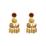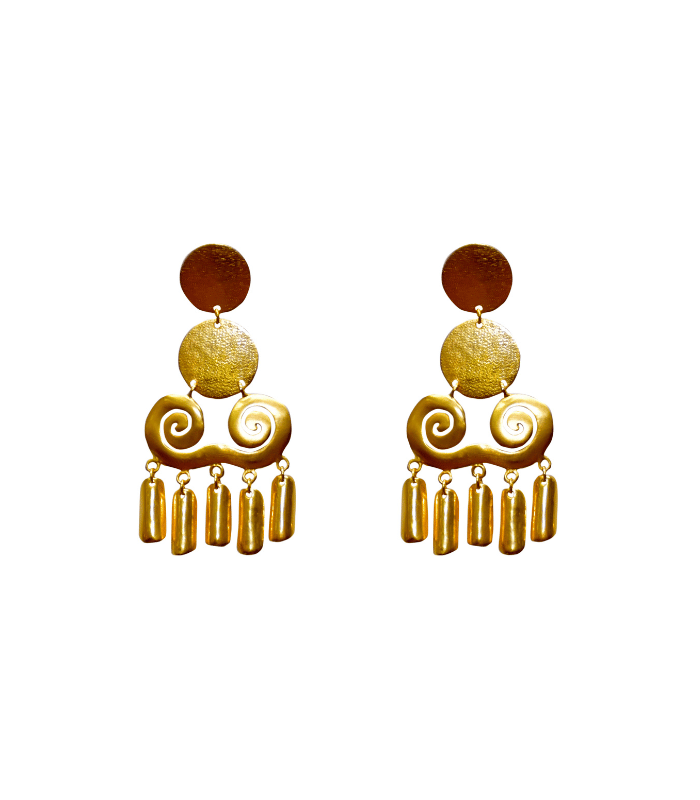 This earring design highlights the influence of the curved patterns and delicate details characteristic of TAYRONA jewelry. The wavy structure and metallic pendants evoke ancestral aesthetics, combining modernity and tradition in a single accessory.