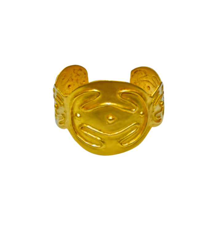 Bracelet inspired by the exquisite designs of the CALIMA culture, which stand out for their geometric details and symbolic meaning. This piece captures the essence of their rich artisan heritage.