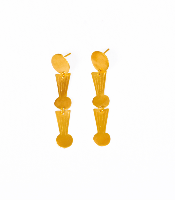 These earrings stand out for their geometric and fluid structure, inspired by the complexity and ornamentation of CALIMA jewelry. The design uses straight lines and circles, fusing modernity with the traditional elements of this culture.