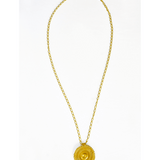 This oversized, prominently designed necklace reflects the beauty of intricate detailing, evoking a style that fuses ancient elements with modern trends.