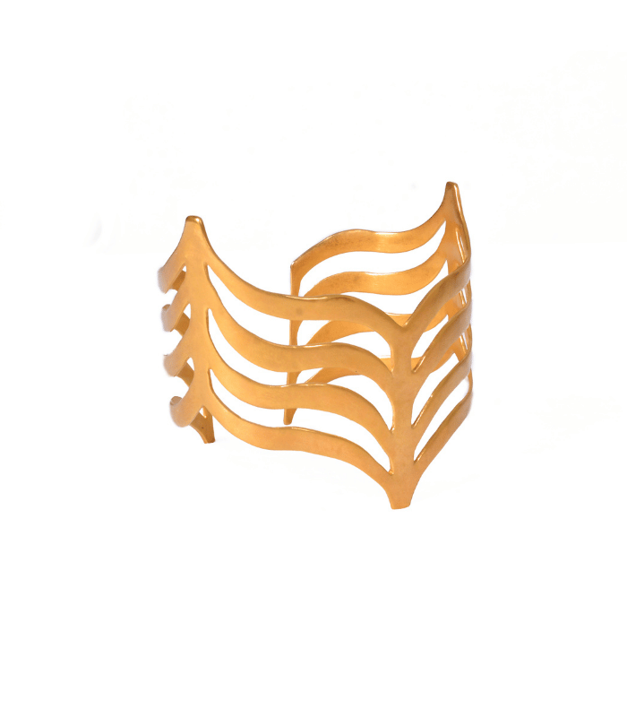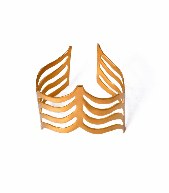All pieces are crafted in brass with a 24kt gold plating, finished in matte gold, and handmade in Colombia.