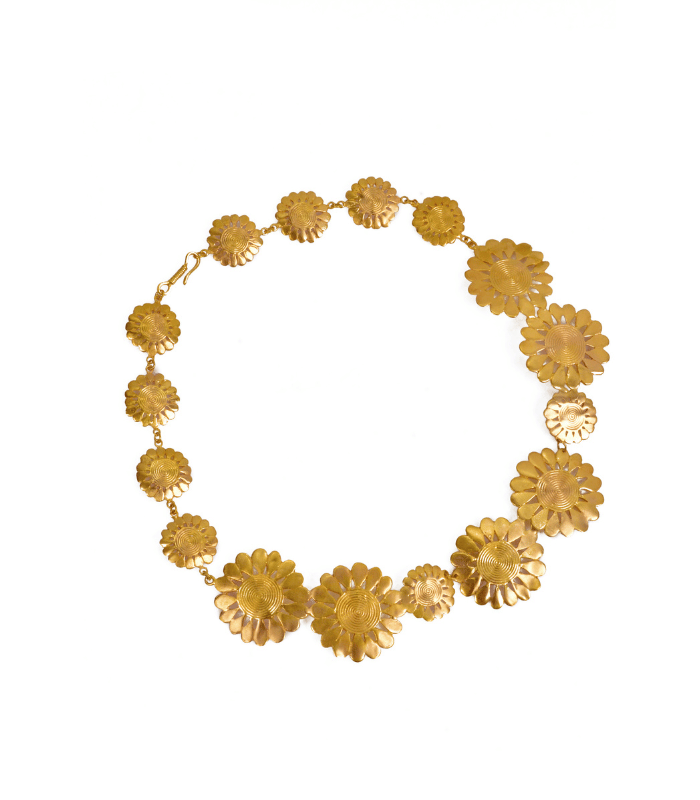 The design of this necklace captures the essence of flowers, reflecting their organic and fluid form. Each piece of this jewel symbolizes natural beauty, combining the delicacy of nature with the sophistication of contemporary design.