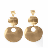 These earrings feature a fusion of MUISCA and QUIMBAYA culture, with geometric shapes that evoke the traditional forms of pre-Columbian artifacts. The combination of circles and rounded figures highlights the harmony between art and nature.