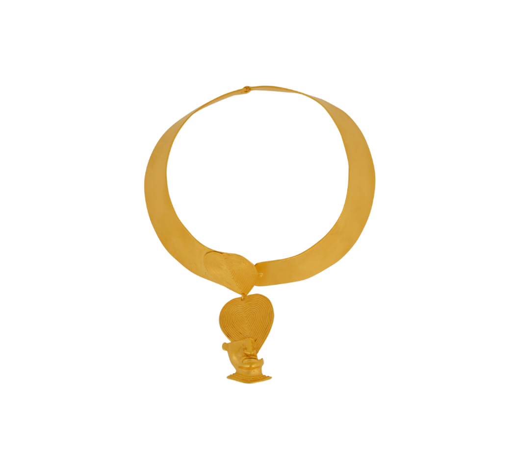 The Qhariwawa Necklace is inspired by the MUISCA tradition, with its geometric elements and ancestral symbolism. This piece pays tribute to the MUISCA culture, evoking the deep connection with the land and the ancestral history of the region.