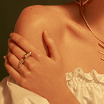 All pieces are crafted in brass with a 24kt gold plating, finished in matte gold, and handmade in Colombia.