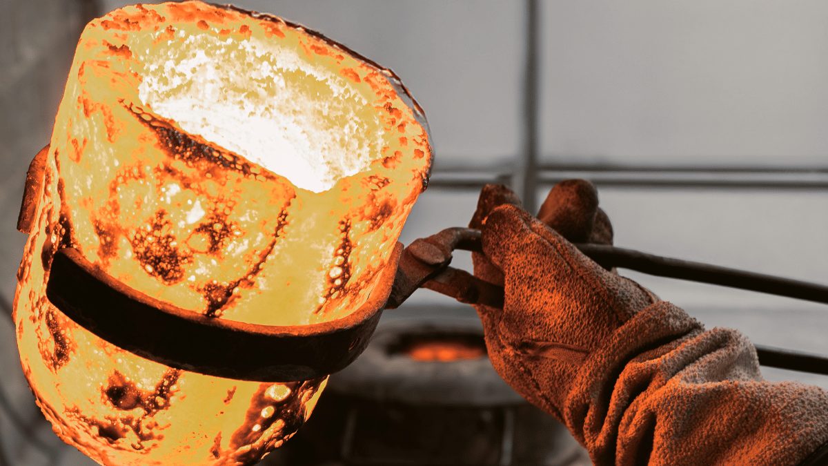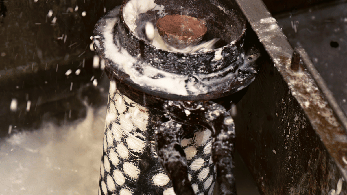 Después de la colada, la pieza de metal enfriada se rompe del molde de yeso y se limpia para ser pulida.
