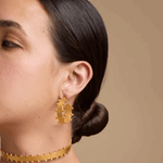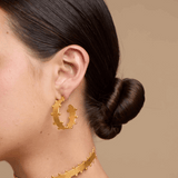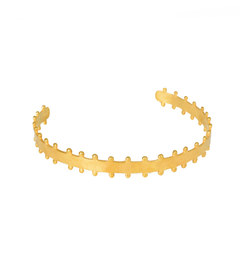 Todas las piezas son de brass con baño en oro de 24kt, acabado en oro mate, hechas a mano en Colombia.