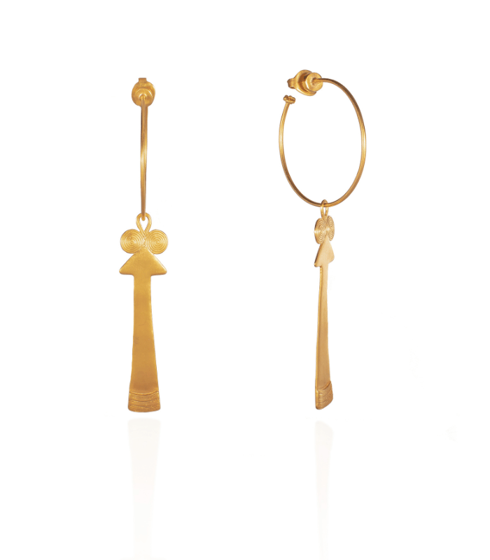 Todas las piezas son de brass con baño en oro de 24kt, acabado en oro mate, hechas a mano en Colombia.