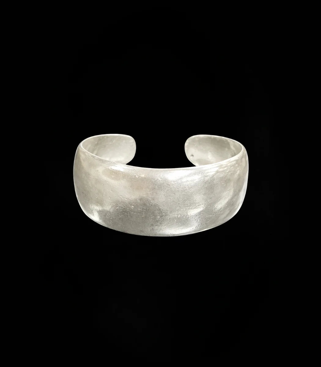 El brazalete Azay, inspirado en la cultura Zenú, presenta un diseño estructurado que refleja precisión y tradición. Su estética limpia lo convierte en una pieza elegante y versátil.