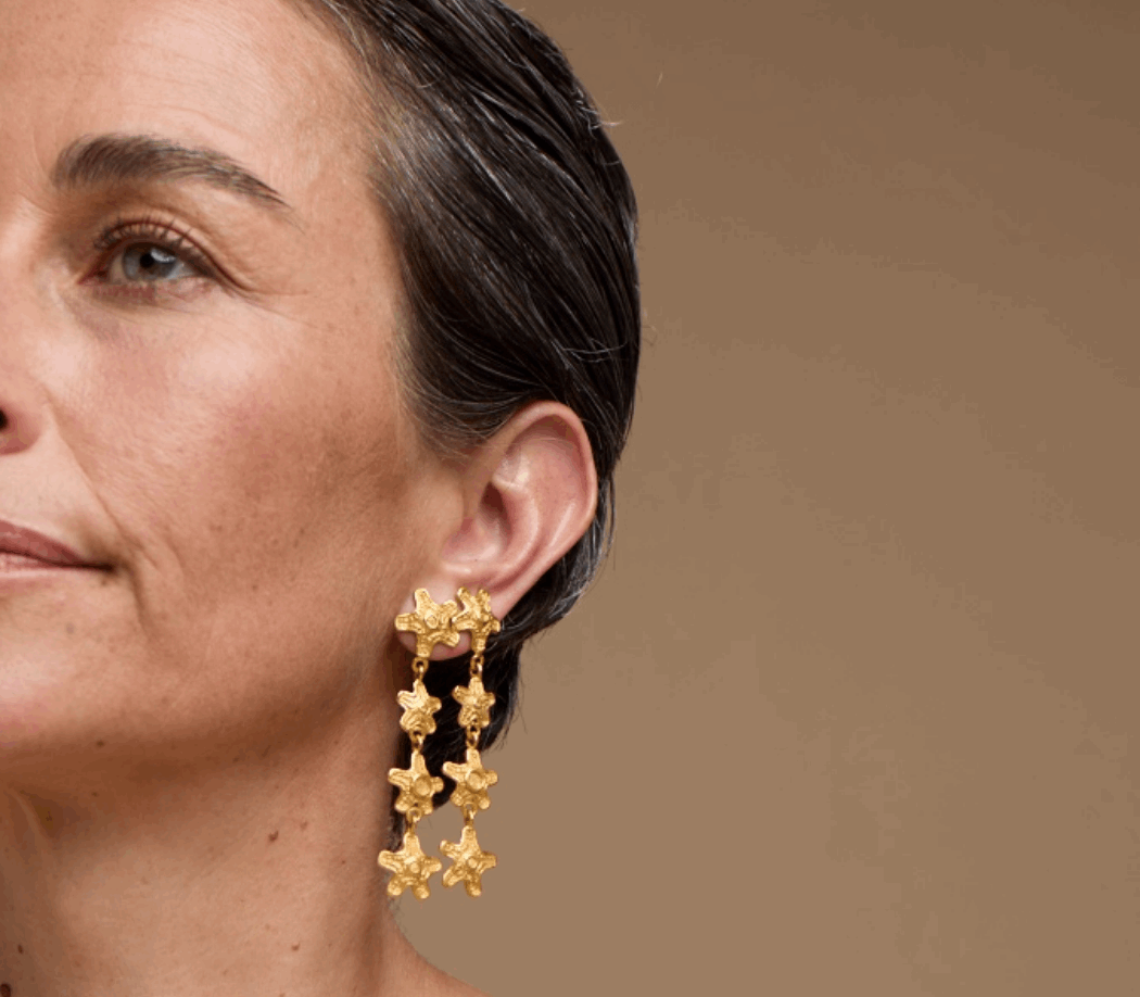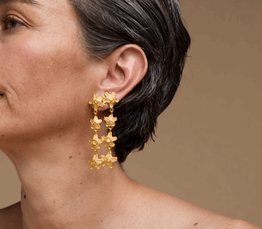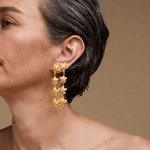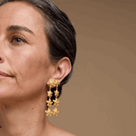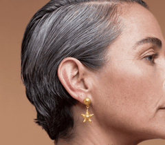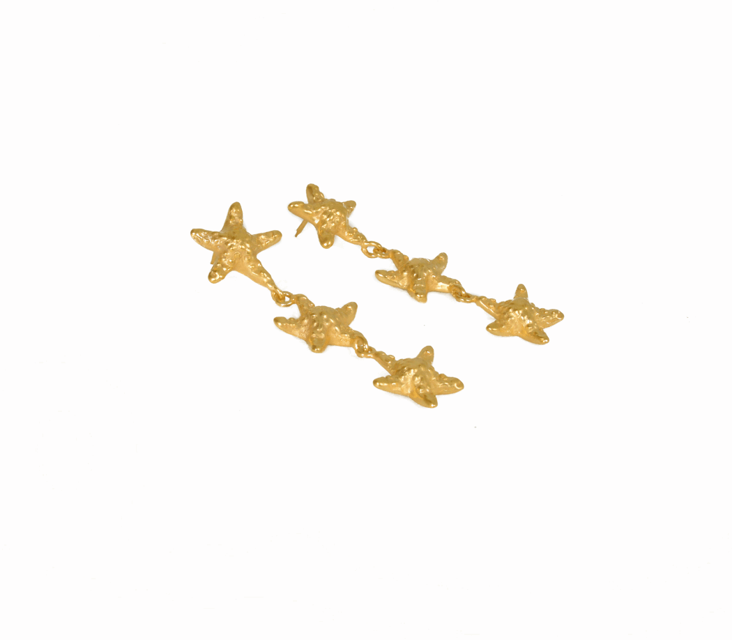 Estos aretes, inspirados en las estrellas de mar, evocan la profunda conexión de la cultura Tairona con la naturaleza marina. El diseño fluido y orgánico destaca por sus formas delicadas, representando la belleza natural del mar y su riqueza simbólica. Una pieza que captura la esencia del mar y la historia indígena de Colombia.