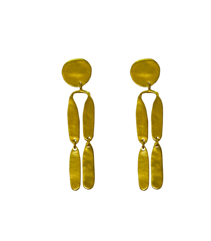 Todas las piezas son de brass con baño en oro de 24kt, acabado en oro mate, hechas a mano en Colombia.