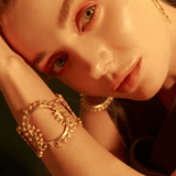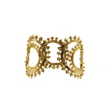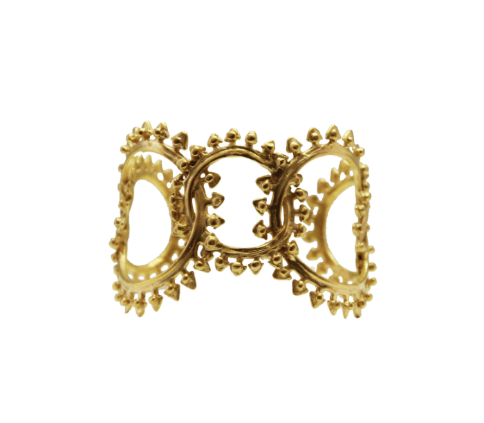 Todas las piezas son de brass con baño en oro de 24kt, acabado en oro mate, hechas a mano en Colombia.