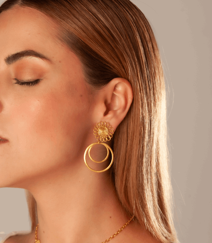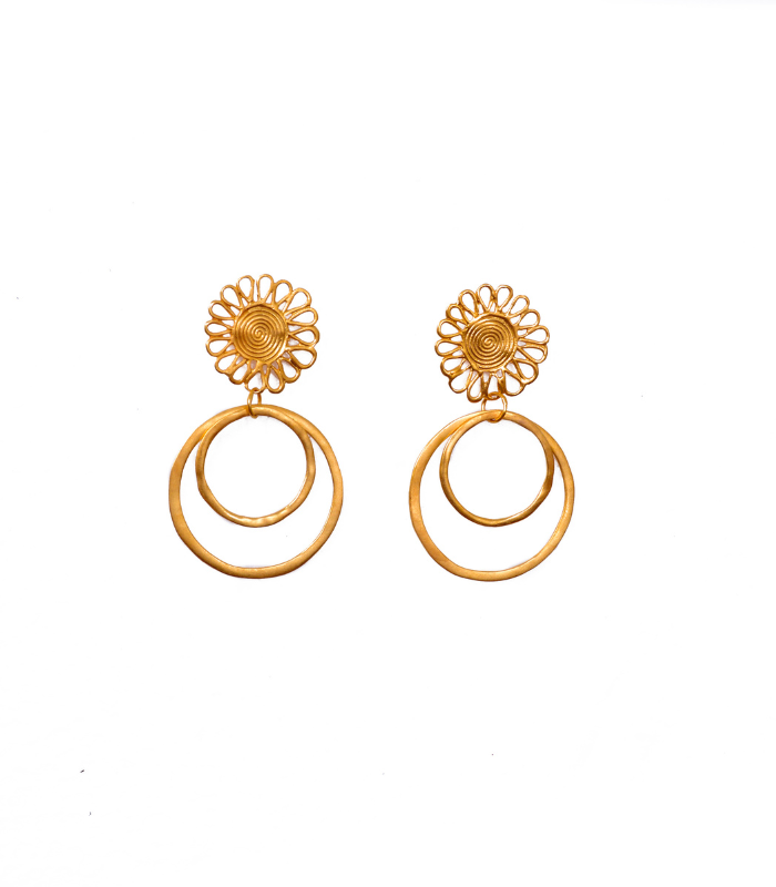 Todas las piezas son de brass con baño en oro de 24kt, acabado en oro mate, hechas a mano en Colombia.