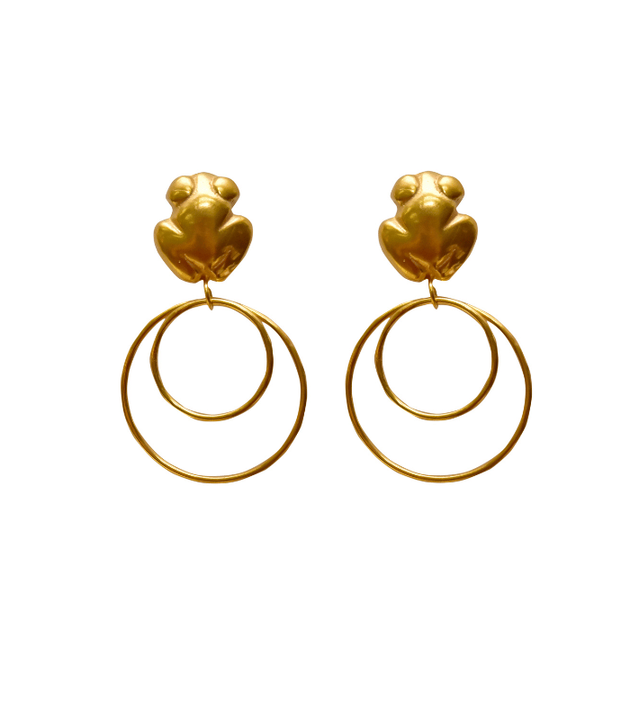 Todas las piezas son de brass con baño en oro de 24kt, acabado en oro mate, hechas a mano en Colombia.