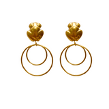 Estos aretes inspirados en la cultura Tayrona presentan un diseño que combina la riqueza simbólica de las figuras precolombinas con la modernidad de aros minimalistas. Perfectos para añadir un toque de sofisticación histórica a cualquier atuendo.