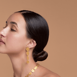 Estos aretes, con sus formas geométricas y líneas limpias, están inspirados en las culturas ancestrales que reflejan la conexión entre la naturaleza y el arte.