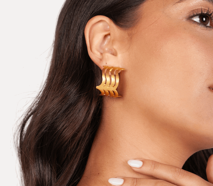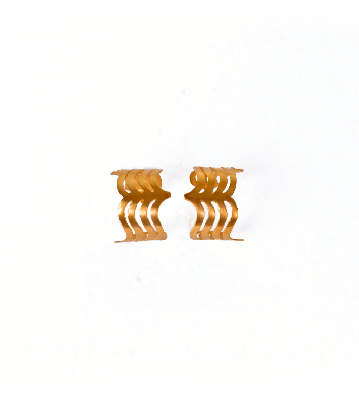 Todas las piezas son de brass con baño en oro de 24kt, acabado en oro mate, hechas a mano en Colombia.
