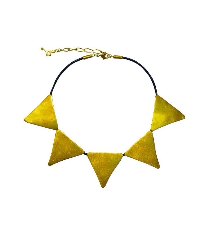 Todas las piezas son de brass con baño en oro de 24kt, acabado en oro mate, hechas a mano en Colombia.